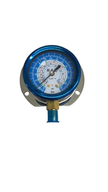 MANOMETRO DE BAIXA DE SOBREPOR COM GLICERINA E TOMADA DE PRESSAO VERTICAL RAC R22/R134A/R404A/R407C (060-212)